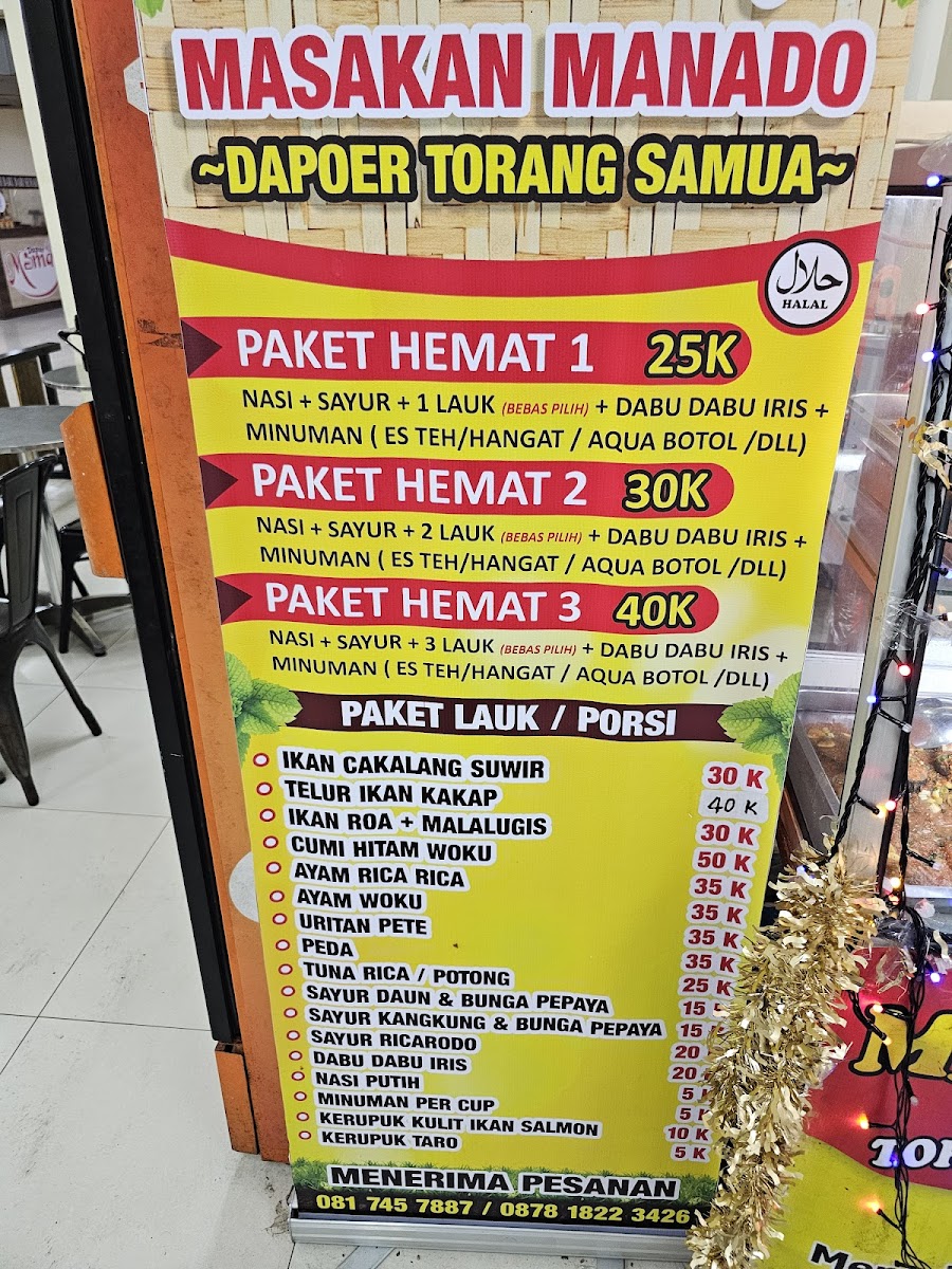 The pricing is refreshingly affordable, with packages starting at just Rp25,000, which includes a generous serving of rice, your choice of lauk, sambal dabu-dabu, and a drink. The dishes strike a balance, catering to local palates while maintaining that rich Manado essence. Though the venue can get crowded during peak hours, the warm atmosphere and exquisite flavors make for an unforgettable dining experience.